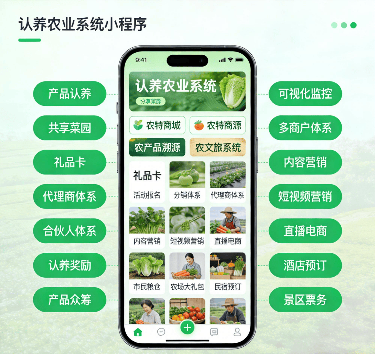 核心优势:一是功能全面且灵活,可根据企业规模定制专属方案,无需额外付费添加基础功能;二是技术稳定,高并发承载能力强,适配节假日认养高峰;三是深耕行业,懂农业更懂运营,能提供针对性的运营指导;四是报价透明,无隐性成本,落地周期较行业平均缩短60%。