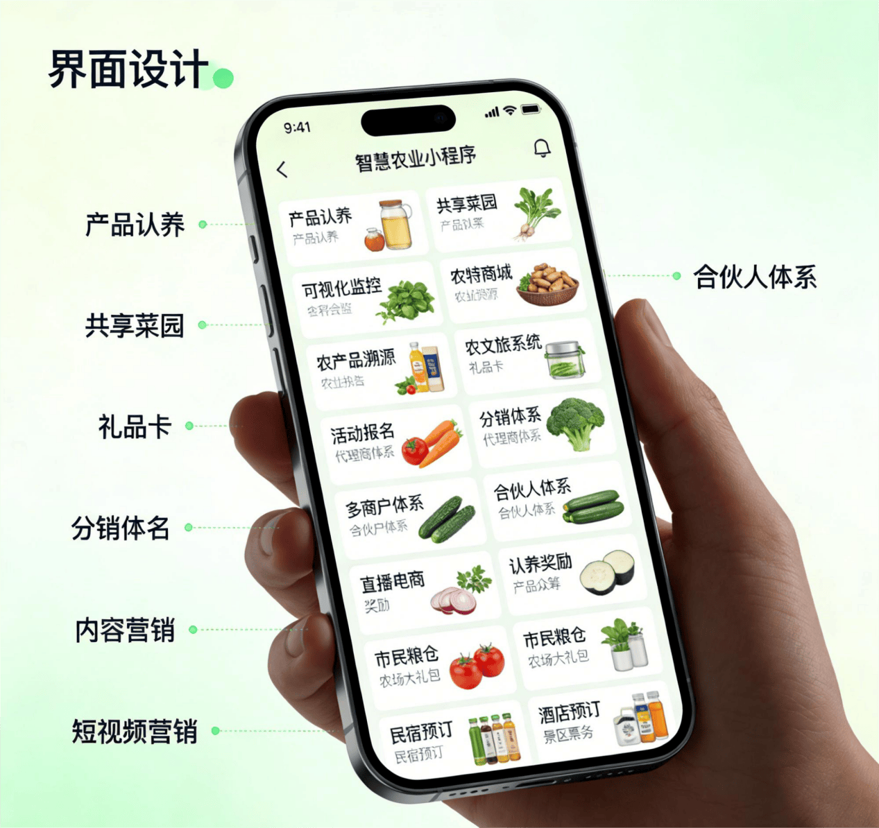 家庭农场、专业合作社,可通过产品认养、共享菜园、分销体系激活运营活力,降低获客成本;农文旅融合企业,可依托农文旅系统、民宿酒店预订等模块,实现多业态协同运营;农产品加工与销售企业,可通过农特商城、直播电商、产品众筹模块,打通产销闭环;